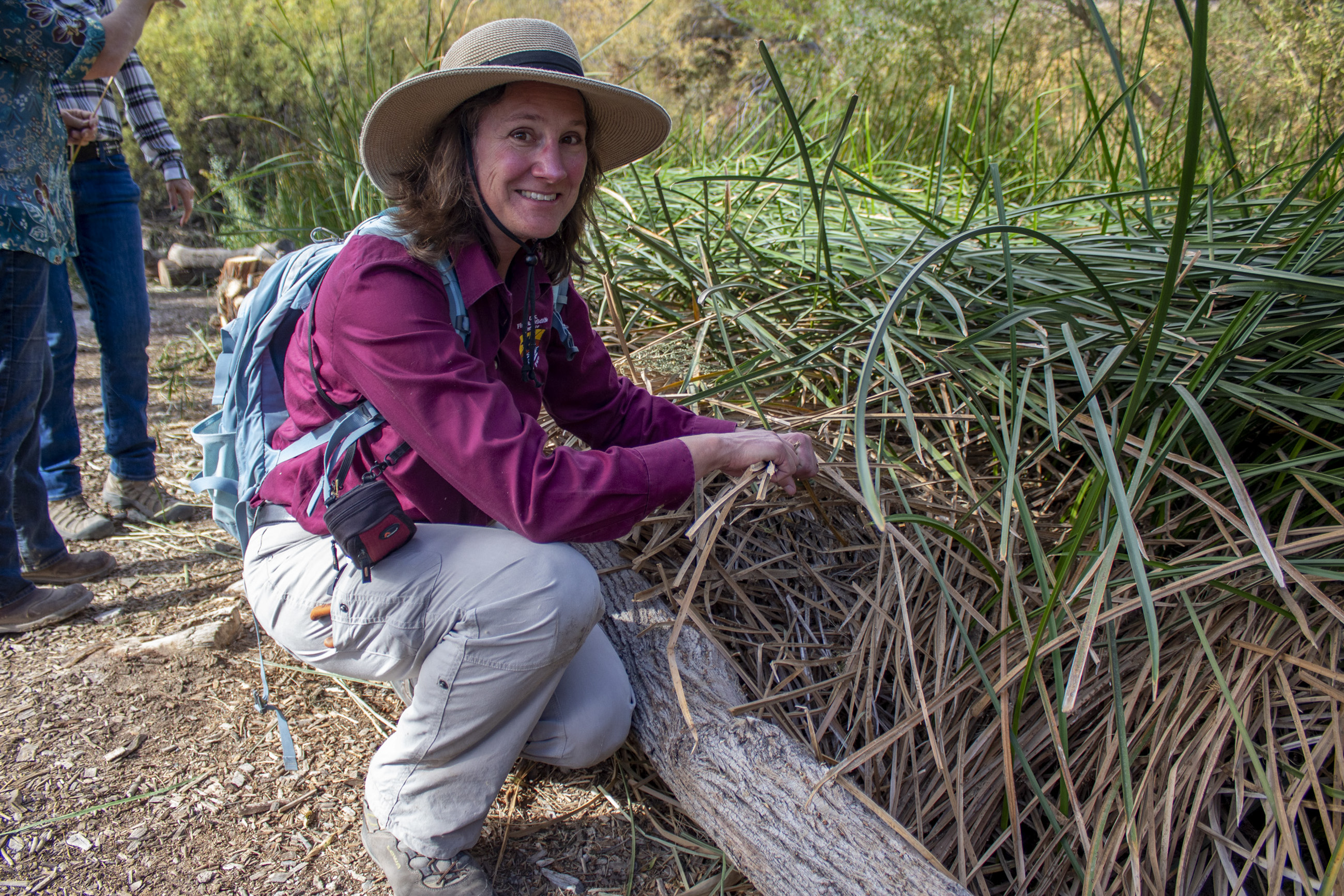 Christiana Manville beside the newly created marsh where the voles will be released. Credit: Rebecca Fabbri/USFWS