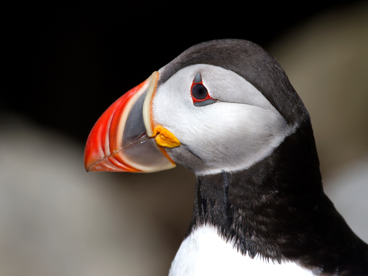 Closeup of a puffin at Petit Manan National Wildlife Refuge in Maine.