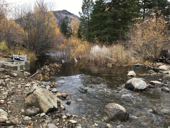 Completed upper diversion. The roughened channel was built to hold water at an elevation that would allow the water to flow into the irrigation ditch at low flows.