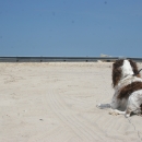 A leashed dog enjoys the view at Prime Hook National Wildlife Refuge in Delaware.
