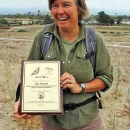 Dr. Lisa Stratton, director of ecosystem management at UCSB’s Cheadle Center for Biodiversity & Ecological Restoration, with award from the U.S. Fish and Wildlife Service for her work to restore a former golf course. Credit: Robyn Gerstenslager/USFWS