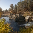 A newly installed “rocky ramp” on Dry Creek, to the left, enables fish to navigate to this pool, where they can jump the small natural waterfall on the right.