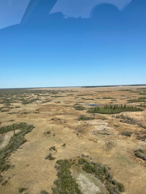 This picture taken during the 2023 Waterfowl Breeding Population and Habitat Surveys shows dry habitat conditions in the Northwest Territories.