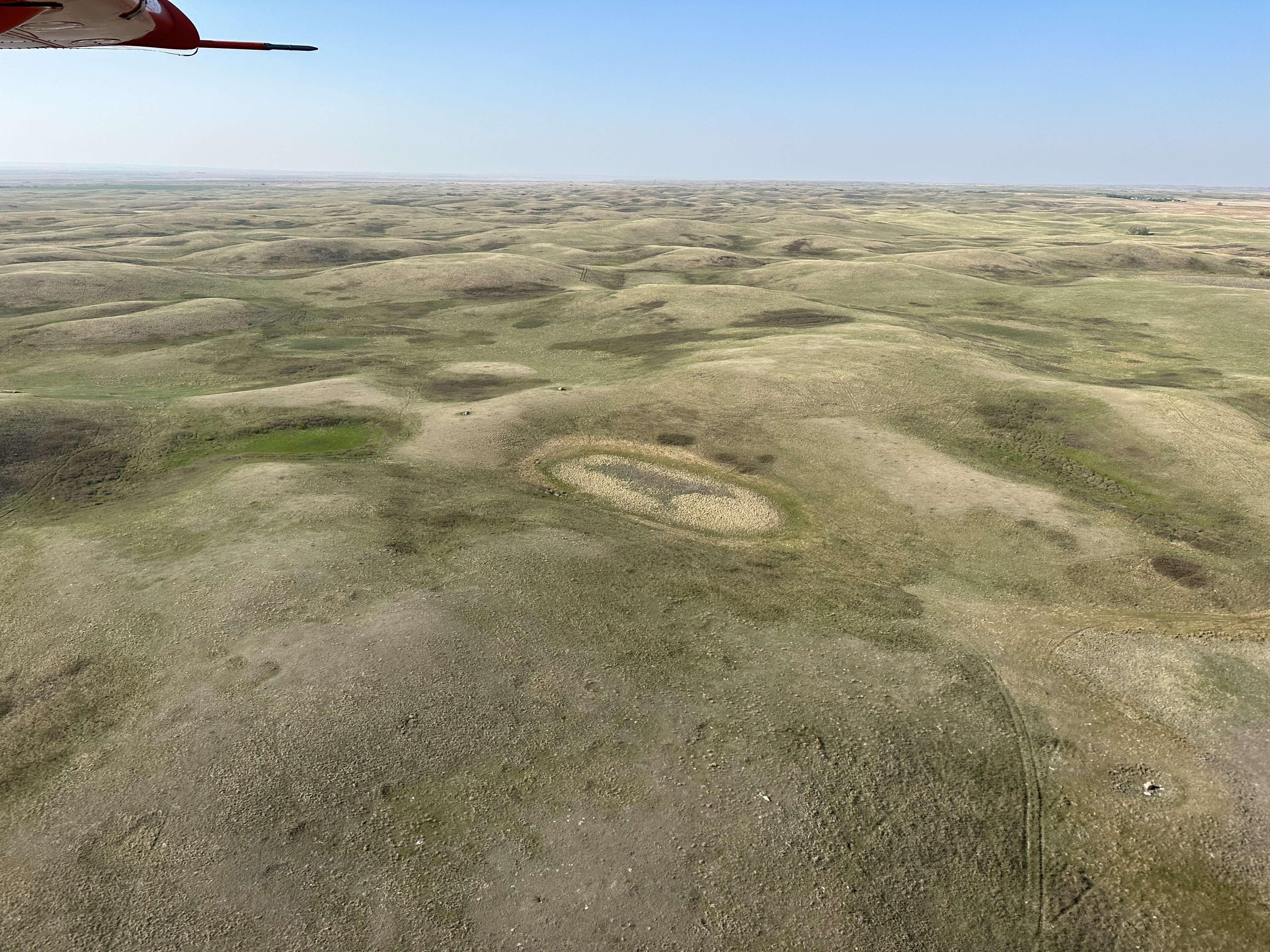 Dry wetlands in the western grasslands of Southern Saskatchewan taken during the 2023 Waterfowl Breeding Population and Habitat Surveys.