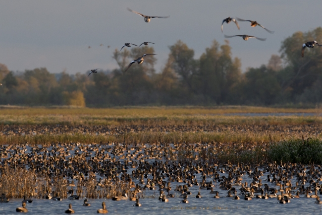 Ducks and geese covering a wetland at Sacramento National Wildlife Refuge Complex
