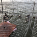 This picture of round swim-in traps was taken during the 2022 waterfowl banding operations in Alberta, Canada. This is one of the primary methods biologists use to trap ducks so they can place bands on them.