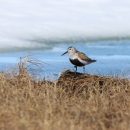 Scientists attach uniquely numbered metal bands to birds leg to identify them. Banding studies in North America are regulated by the USFWS and banding data is managed by the USGS. Studies that need to identify individuals from year to year do this by placing colored bands and field-readable flags on birds legs. Each individual from a study can be identified by their unique combination of colors and the alpha-numeric code on the flag. Furthermore, the flag colors for shorebirds are coordinated among countries. Birds banded in North America are banded with green flags, like the Dunlin pictured here.