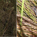 Figure 5. Using a “bander’s grip” someone is releasing a black rail by gently placing it on top of dense vegetative cover (left photo). A black rail released in this manner may walk (right photo) or make a short flight way from the release site before disappearing into cover- or disappear beneath plant cover immediately following release. Note the optional “above joint” placement of the band on this individual. Resumption of capture activities following a release should be planned to avoid disturbance to the release site. Images: USFWS, W. Woodrow