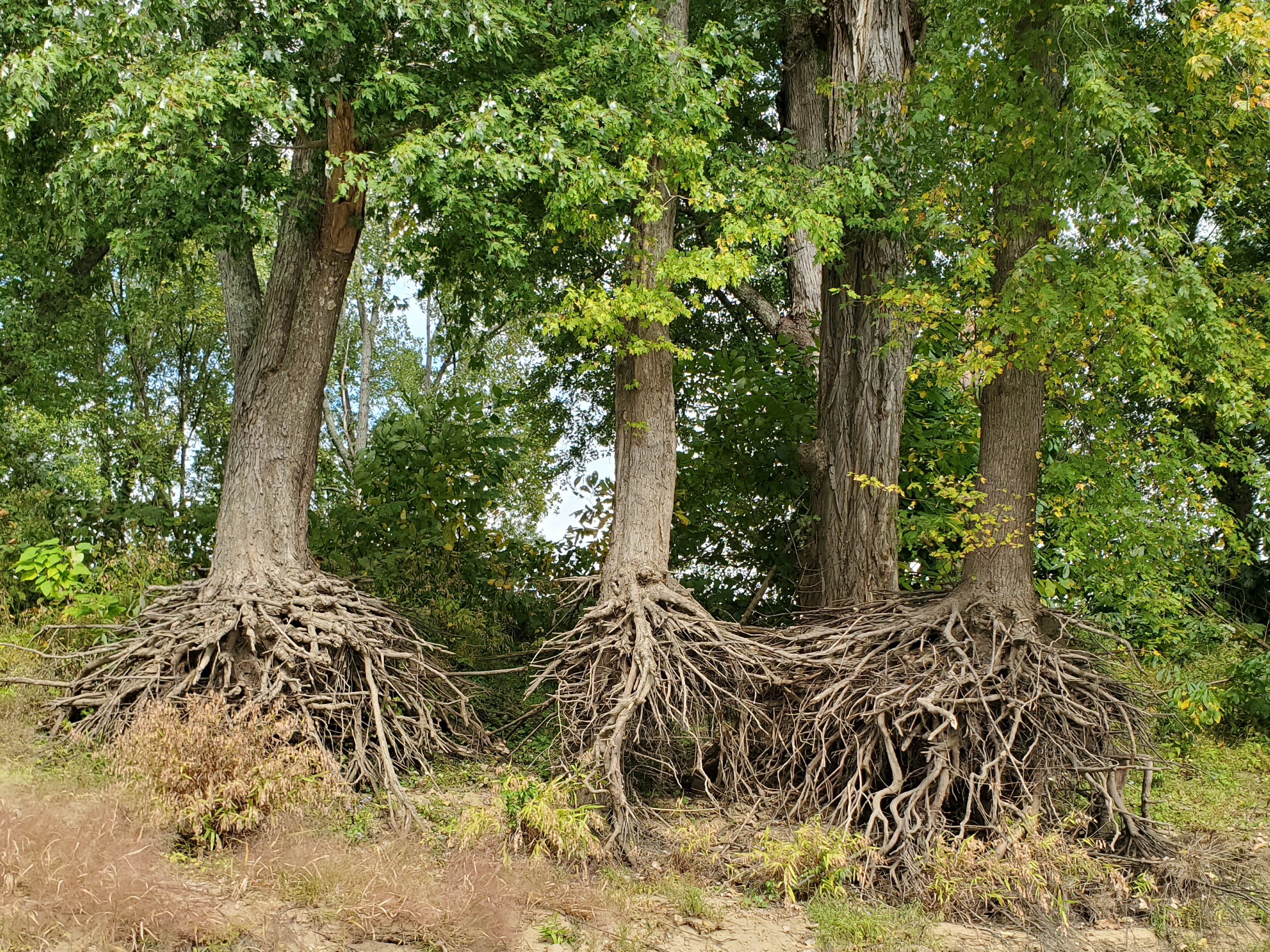The banks of Manchester 2 have been rapidly eroding since the construction of a dam downriver, leaving tree roots exposed.
