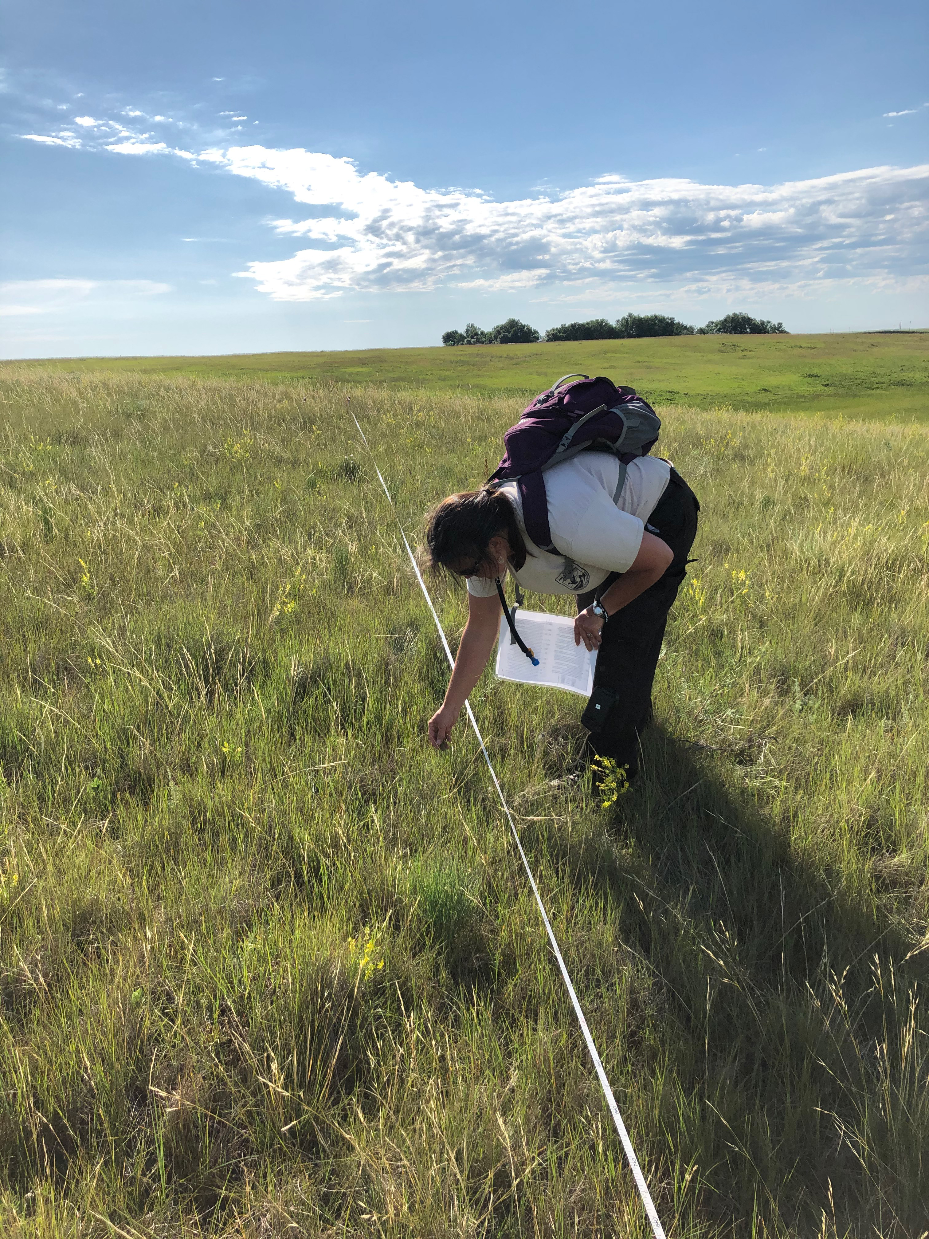 Examining grass during the Native Prairie Adaptive Management vegetation survey