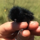 Figure 3. An eastern black rail chick, only several days old as evidenced by the egg tooth. This chick was captured and held by an experienced black rail bander, during a capture attempt using the mist net method accompanied by auditory lure, July 2015, in coastal Texas. Use of the mist net method requires training by an experienced practitioner. Image: USFWS, J. Wilson