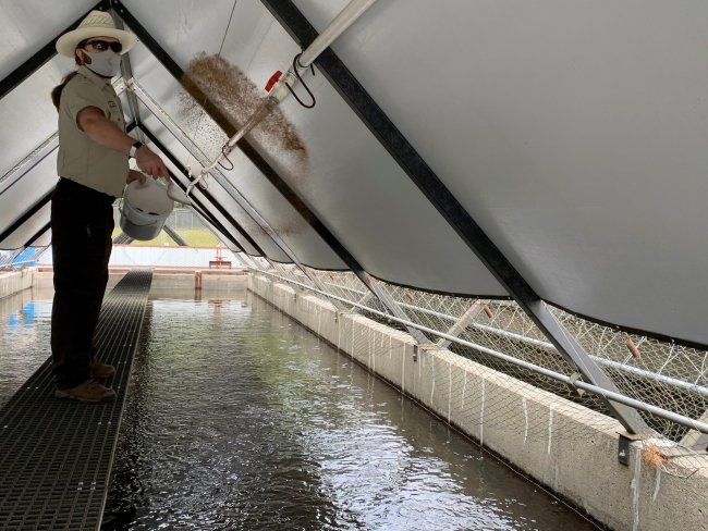 Quilcene National Fish Hatchery staff feeding