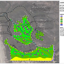 This is a detailed restoration plan for Alternative 2, the Proposed Project. A larger area of restored low marsh habitat, surrounded by areas of mid to high marsh to the north and south of the existing Model Marsh. are proposed under this alternative. The restored area would be connected to the South Beach Slough. Smaller areas of mudflat habitat would be restored at the intersections of the newly created intertidal channels. A separate smaller restoration area to the east of the main restoration site would be connected to the Old River Slough. Restored habitat would include intertidal channels surrounded by mid to high marsh. Native transitional habitat is proposed in small areas along both the northern and southern edge of the previously restored Model Marsh. Existing native transitional habitat would occur along the southern boundary of the site and native upland habitat would be present along the southeast and east edge of the restored wetland.