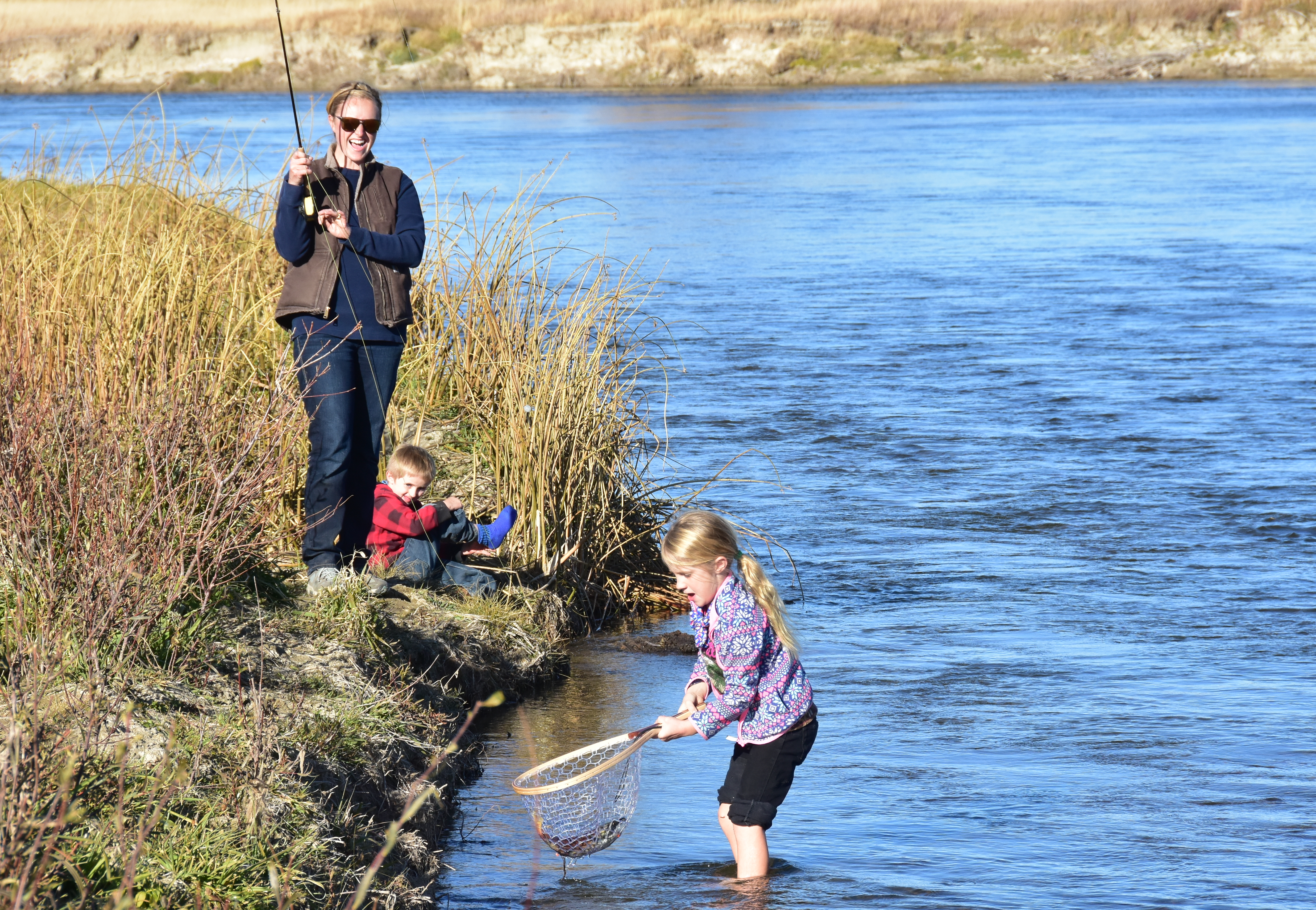 Family fun day on Seedskadee National Wildlife Refuge. Mom gets an assist on the net.