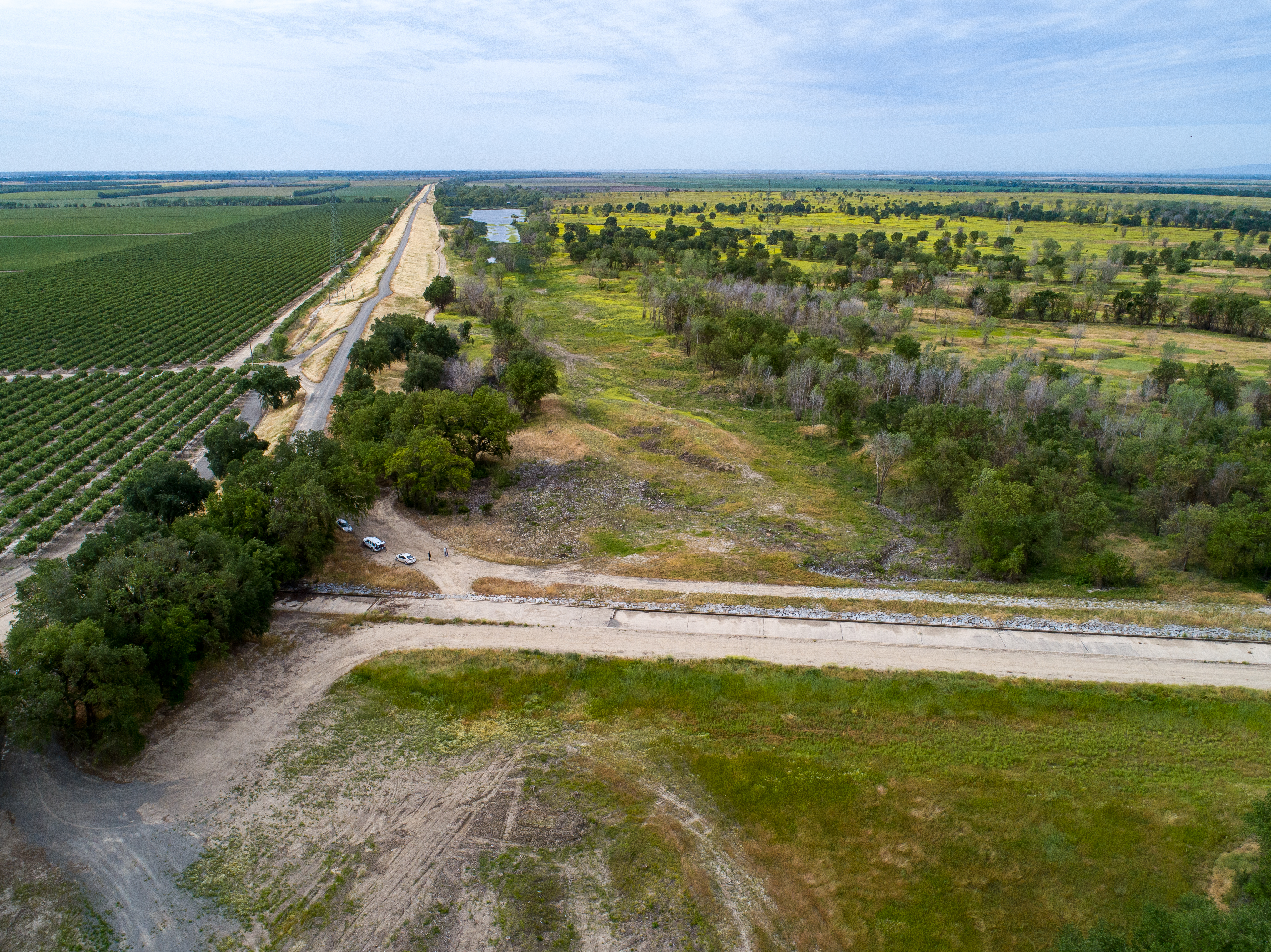 An aerial drone view of the Fremont Weir State Wildlife Area, part of the future Big Notch Project in Yolo County, California. This images shows what the site looks like before groundbreaking and construction begins on the Big Notch Project.