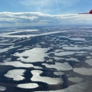 Aerial view of wetlands and a large river in the McKenzie River Delta in Canada taken during the 2023 Waterfowl Breeding Population and Habitat Surveys.