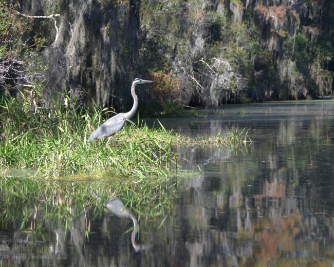 A great blue heron hunts for fish along Canal Run Trail at Okefenokee National Wildlife Refuge. The refuge is the headwaters for two famed Southeast rivers.