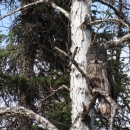 A great gray owl perched in a tree near Kanuti Lake, Kanuti National Wildlife Refuge.