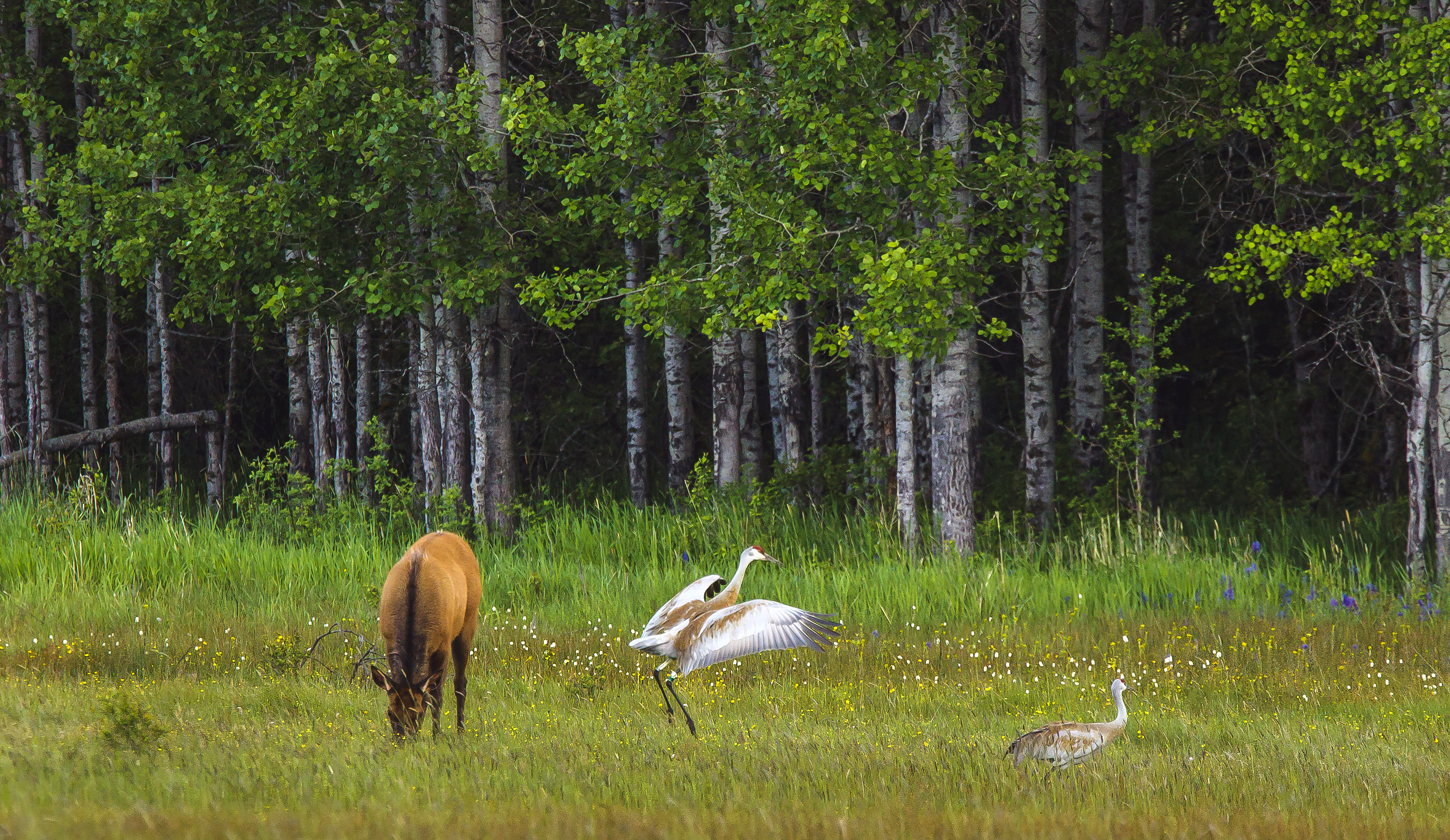 Greater Sandhill Cranes & Rocky Mountain Elk