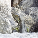 A non-native green iguana pokes its head up from a rock pile at Arthur R. Marshall Loxahatchee National Wildlife Refuge.