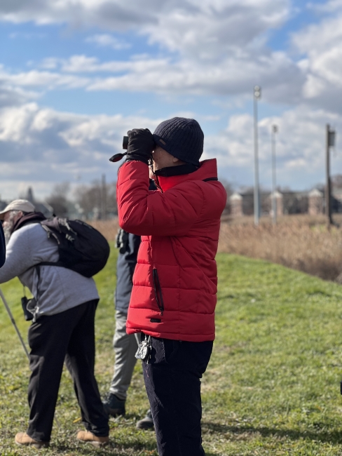 Groundwork Elizabeth Executive Director Jonathan Phillips looks for birds along the Elizabeth River Trail in Elizabeth, New Jersey as part of the Elizabeth Urban Wildlife Refuge Partnership's 3rd-annual Christmas Bird Count on December 17th, 2022.