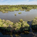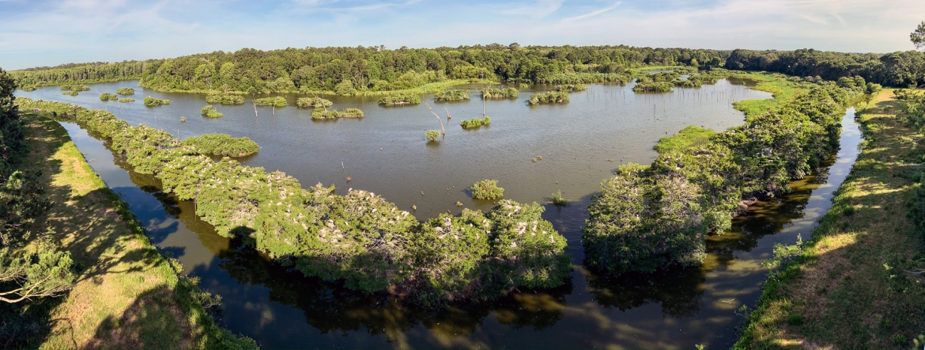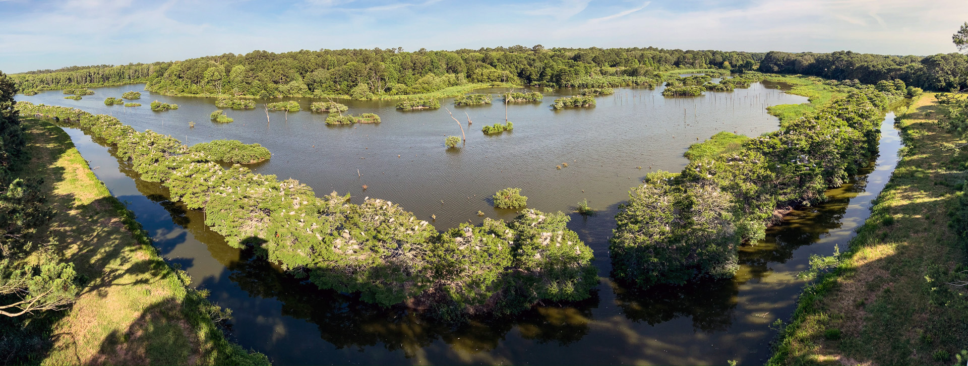 Woody Pond is home to the largest nesting colony of threatened wood storks at Harris Neck National Wildlife Refuge in Georgia. This aerial view was taken from a research