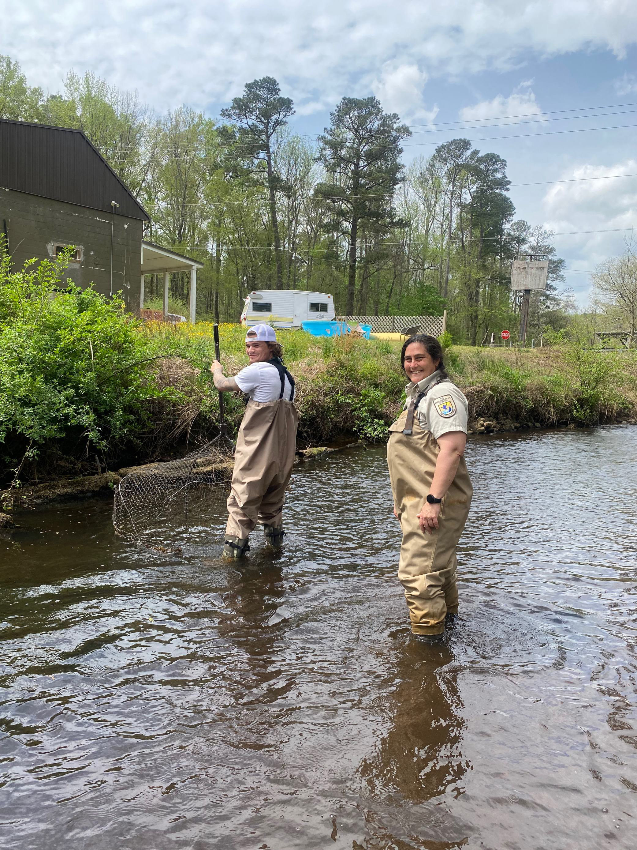 Lane Eubanks, Chickahominy Indian Tribe and Rachel Mair, Hatchery Manager, Harrison Lake National Fish Hatchery
