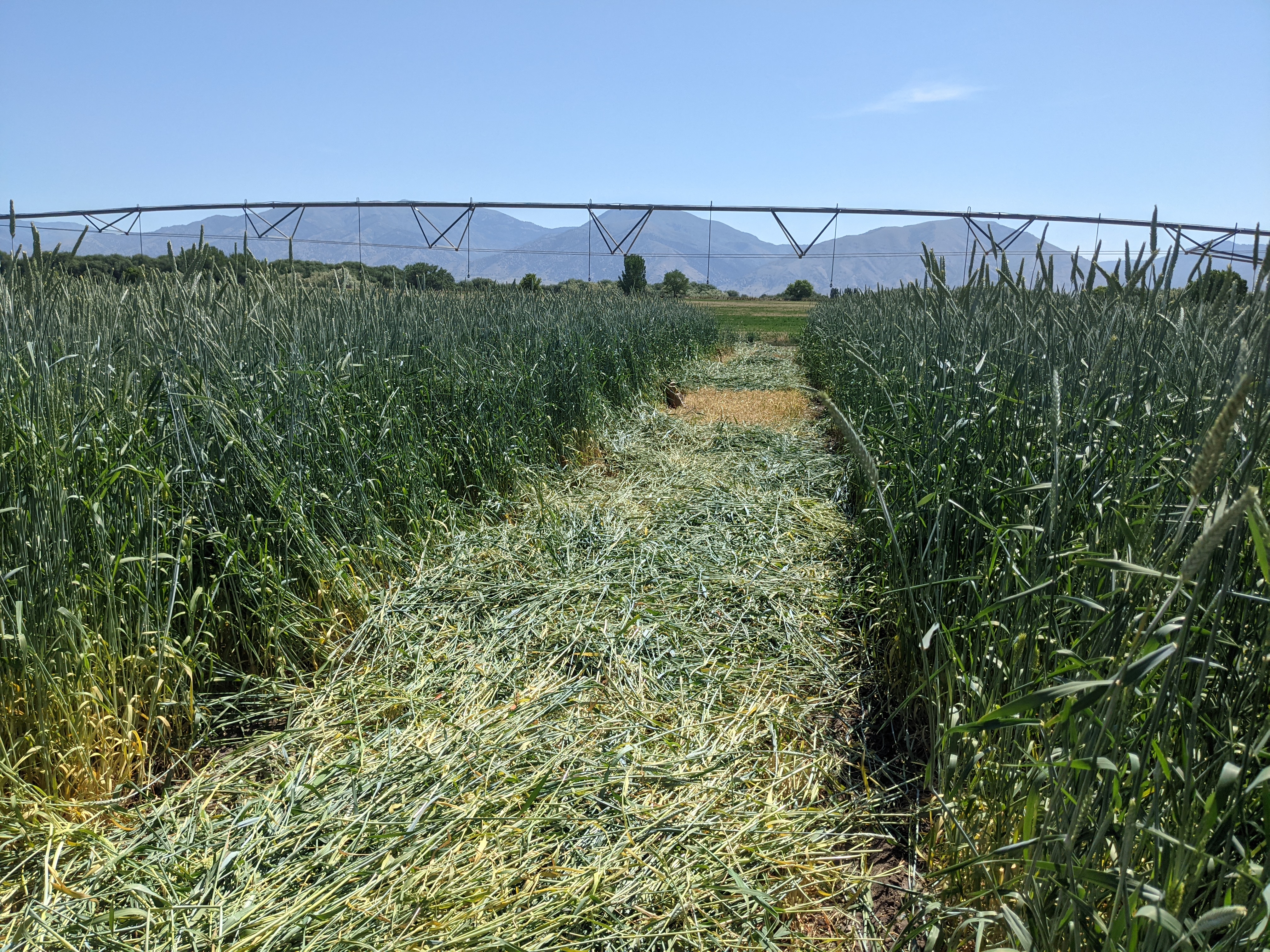 A harvest of three-way (wheat, triticale, and barley) in the Logan, UT trial in 2021.