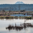 Mount Rainier rises in the distance, the ultimate source of much of the water that feeds the refuge.