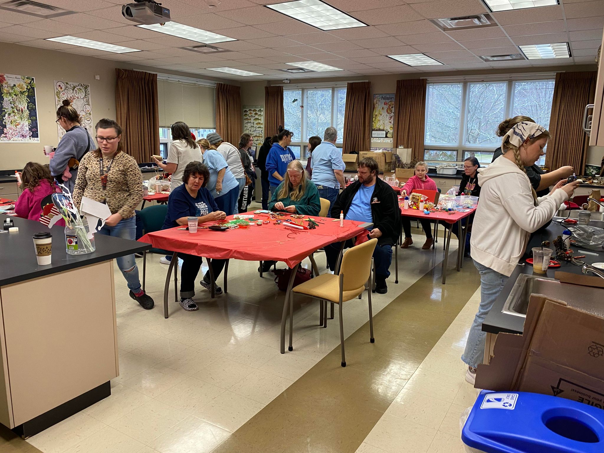 Participants of the 2023 Holiday Open House at Wolf Creek National Fish Hatchery each making a nature-themed ornament.