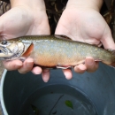 Human holds brook trout at Midwest Fisheries Center by USFWS