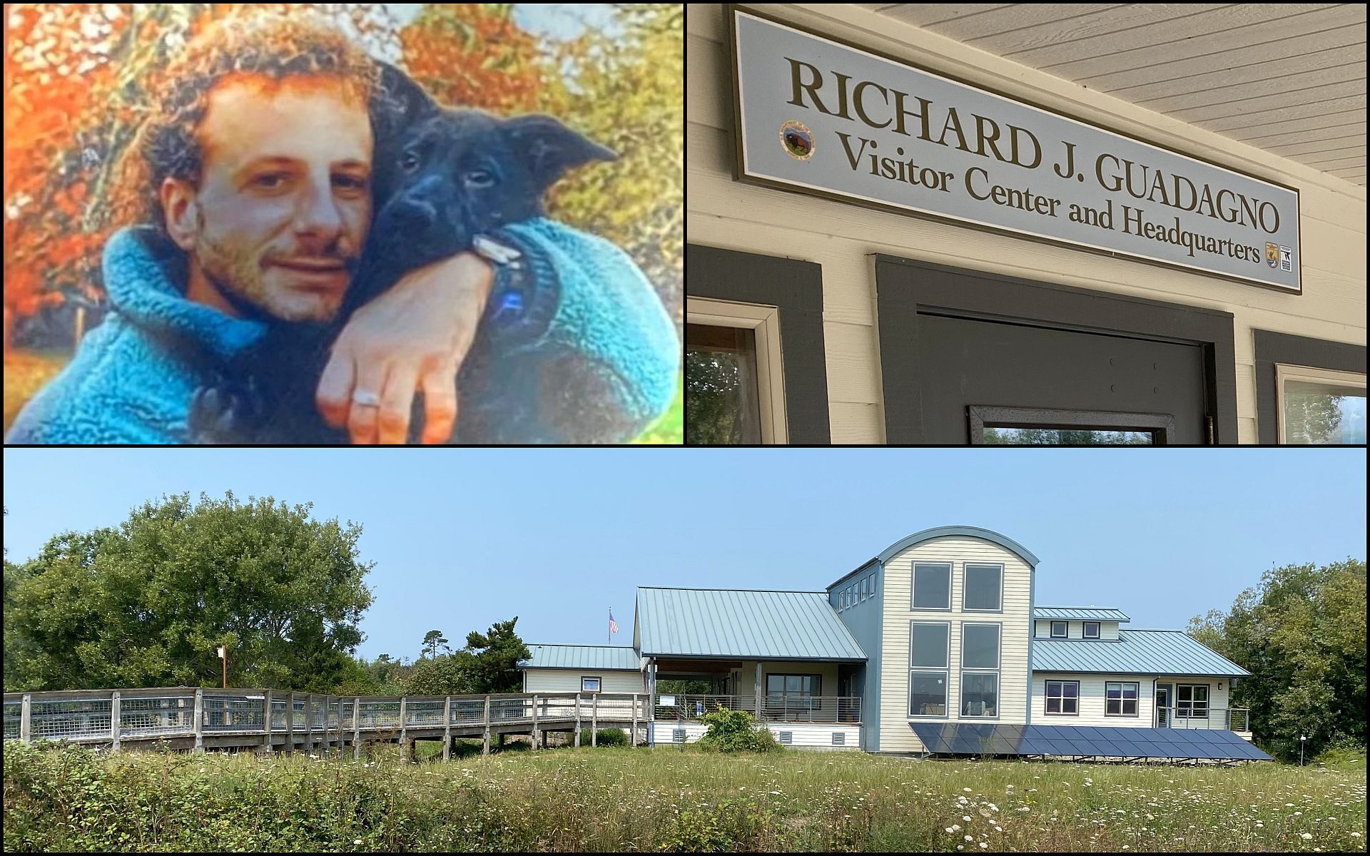 The visitor center at Humboldt Bay National Wildlife Refuge in California is named for Guadagno, who oversaw construction of the building but didn’t live to see it completed. Here he is with Raven, his German shepherd puppy.