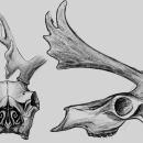 Illustration of a caribou skull from the side and the front, showing the nasoturbinal structure on the inside of the nostrils. Art by Christina Nelson/USFWS.