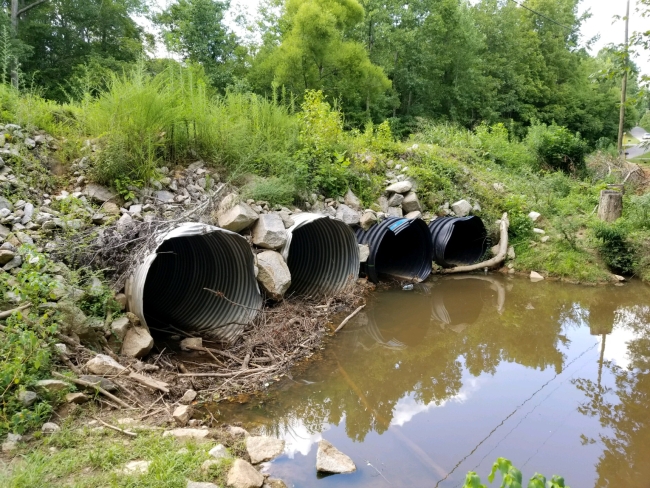 Old, dysfunctional culverts laying under Gills Creek Road, Lancaster County, South Carolina