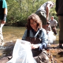 Janet Mizzi assists with the release of Roanoke logperches in the Mayo River, Rockingham County, N.C.