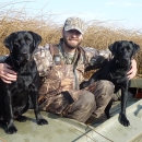 A hunter and his two black labrador retrievers pose for a picture in the bulrushes of Lower Red Rock Lake at Red Rock Lakes NAtional Wildlife Refuge. Photo by Jillian Hadley/USFWS Volunteer