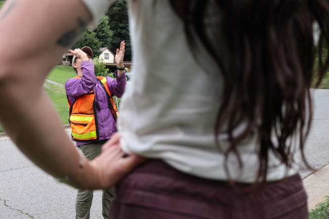 Katherine Etchison, NC Wildlife Resources Commission, gives instructions for conducting an bat emergence count at a bridge across the Pigeon River, NC.