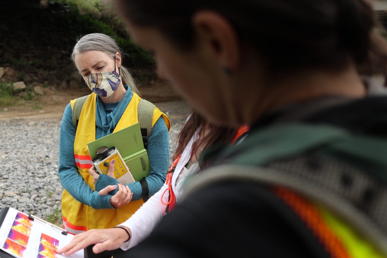 Lauren Wilson in a discussion about bat monitoring during interstate highway construction