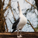 A Laysan albatross or mōlī in Hawaiin raises its beak to preform a courting "sky moo."