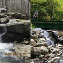 LCFWCO - Undersized, perched culvert preventing aquatic organism passage on the left and replacement bridge with restored stream on the right.