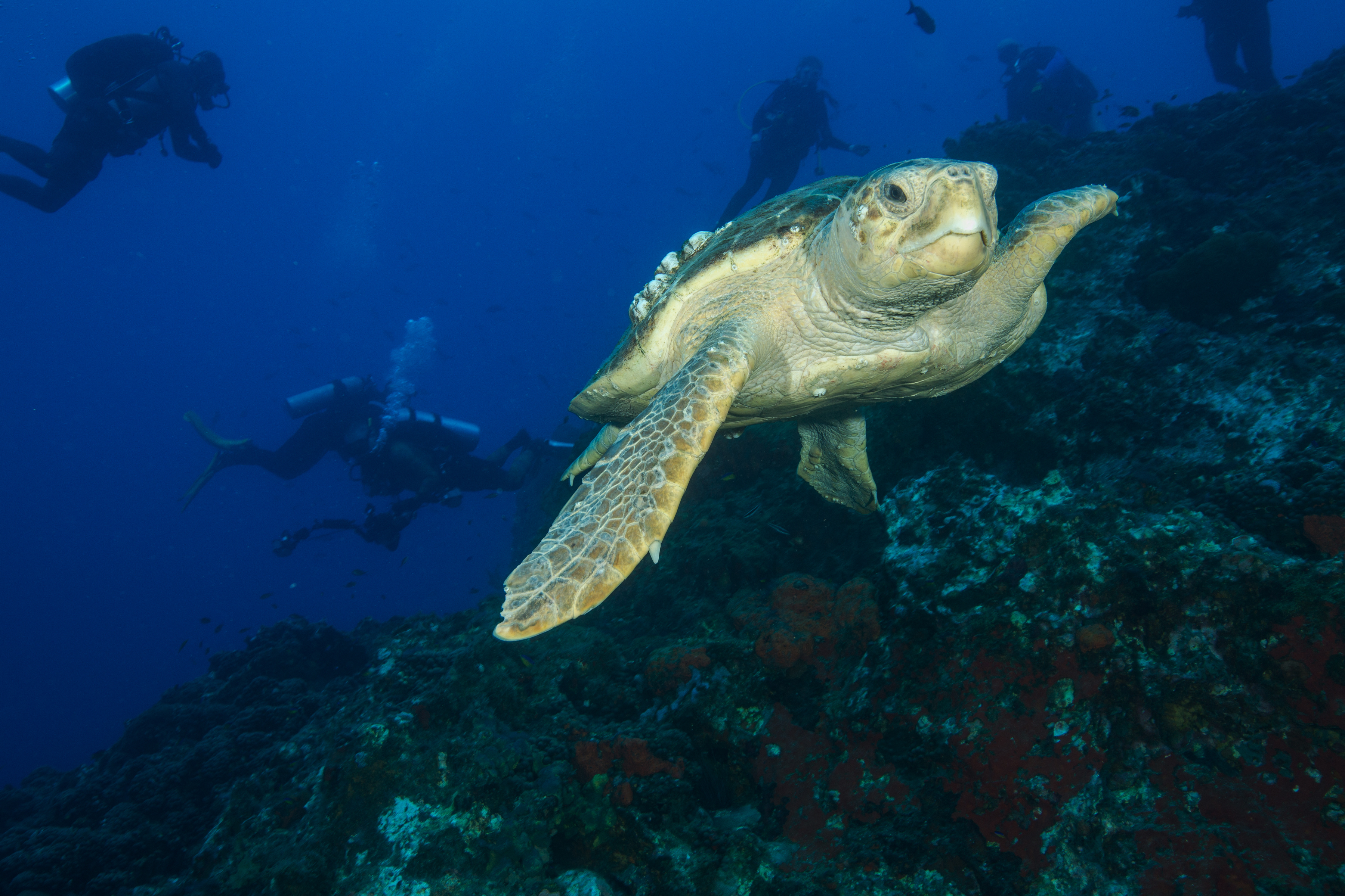 Loggerheads get their name from their relatively large heads, which support powerful jaws and enable them to feed on hard-shelled prey. From hatching to adulthood, a loggerhead increases its weight more than 6,000 times! Marine debris, fishing gear, and development near their nesting areas remain major issues for loggerheads, but by working together we can help reduce these threats.