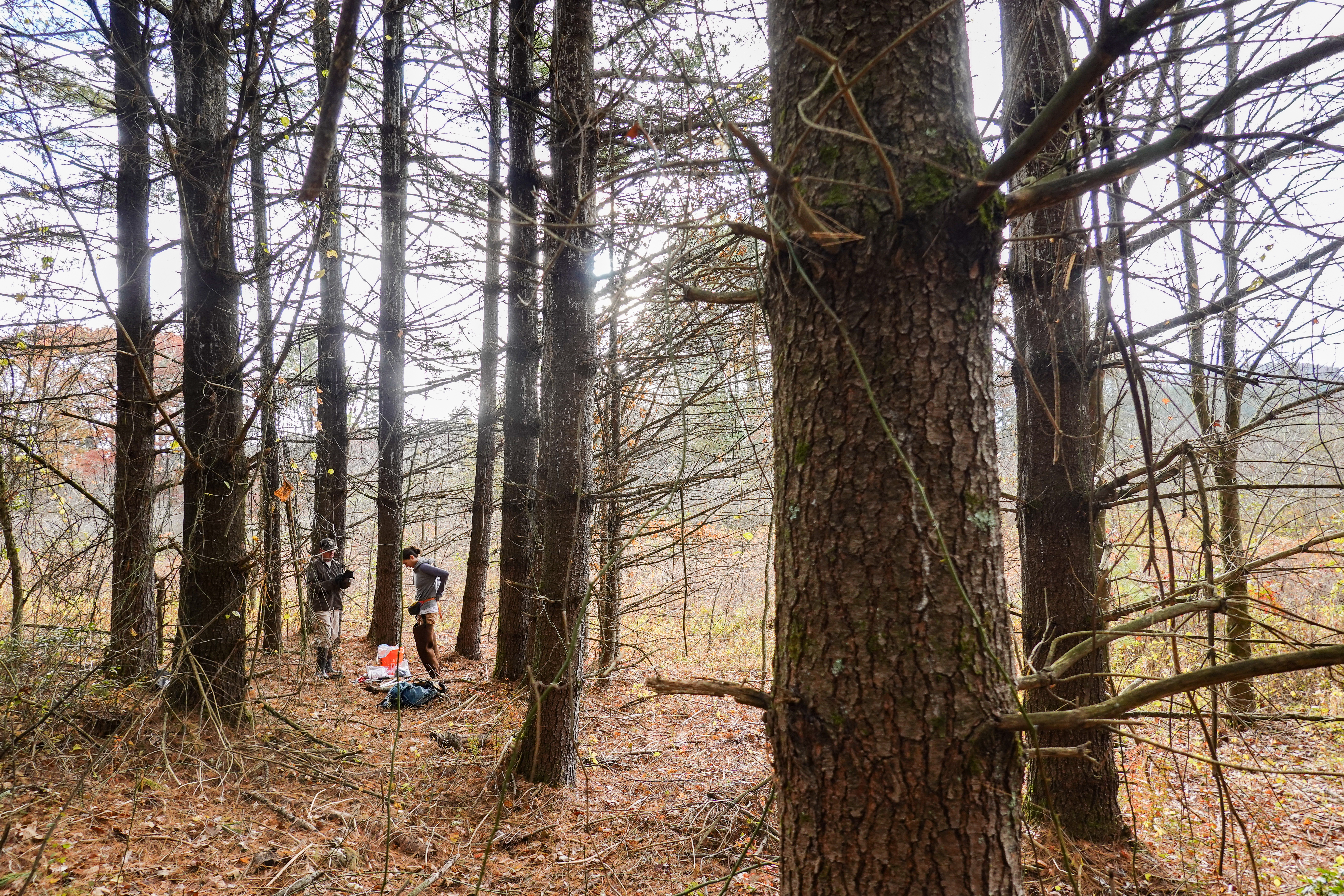 Mark Endries and Sue Cameron, US Fish and Wildlife Service, preparing to do vegetation management in an Alleghany County, NC wetland.