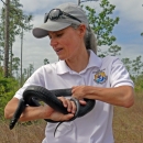 Michele Elmore holds an eastern indigo snake before releasing it into the wild. She is the species' recovery coordinator for the U.S. Fish and Wildlife Service.