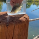 Microfishing angler uses a small clear tank to examine and photographic catch before release.