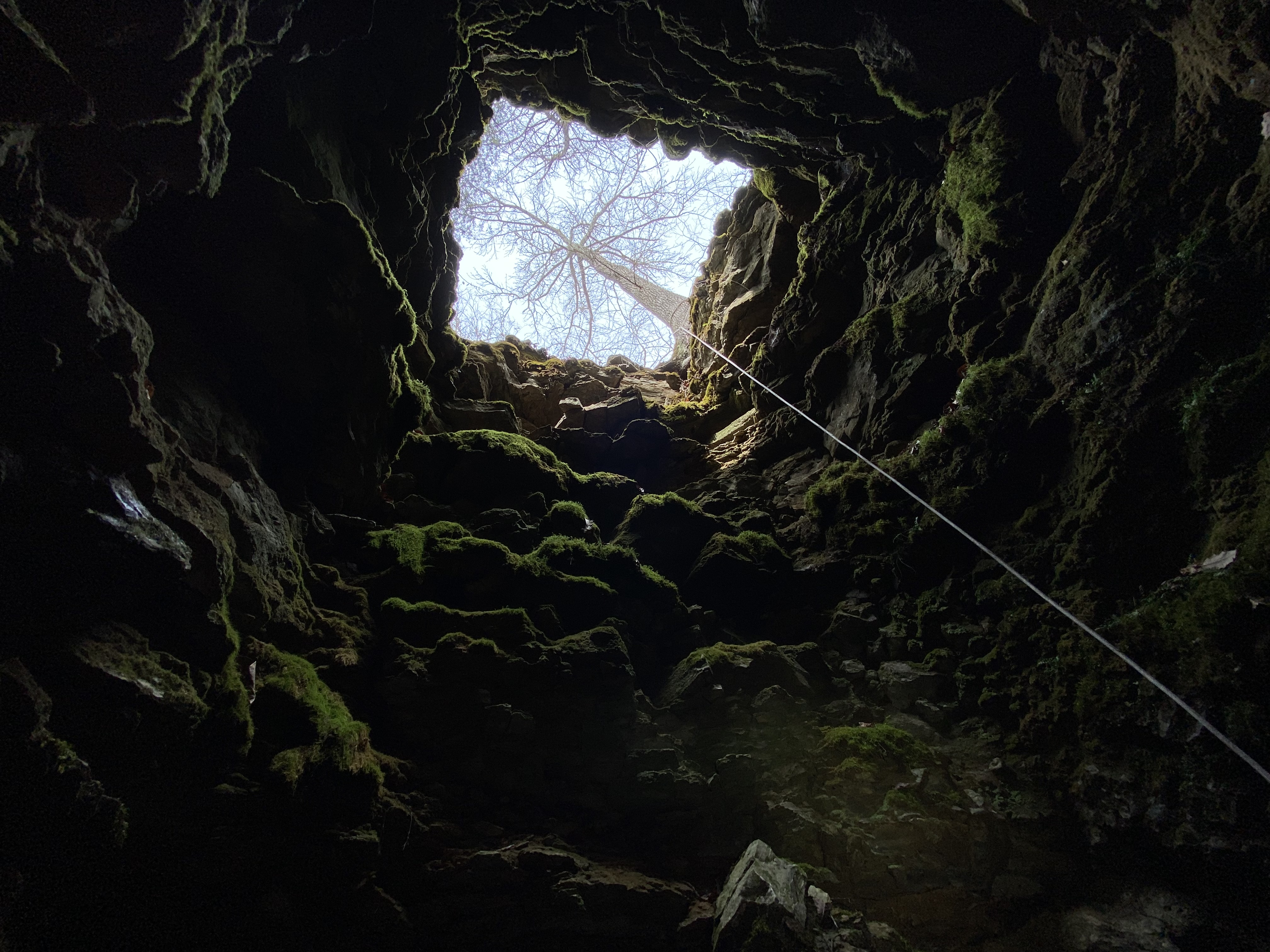 Looking up from the bottom of a mine during a bat survey near Rush, Arkansas.