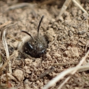 A mining bee (genus Andrena) emerges from its burrow behind the Kenai National Wildlife Refuge's headquarters building in Alaska.
