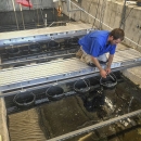 Mitch Stanton deploys baited bucket beetle traps in the refuge tank on July 4. He collected 169 beetles during that three-hour deployment. Credit: Olin Feuerbacher/USFWS