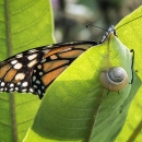 Monarch butterfly and brown-lipped snail at Parker River National Wildlife Refuge in Massachusetts