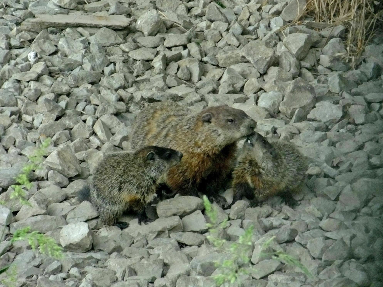 Mother groundhog with her young at DeSoto National Wildlife Refuge in Iowa.