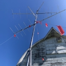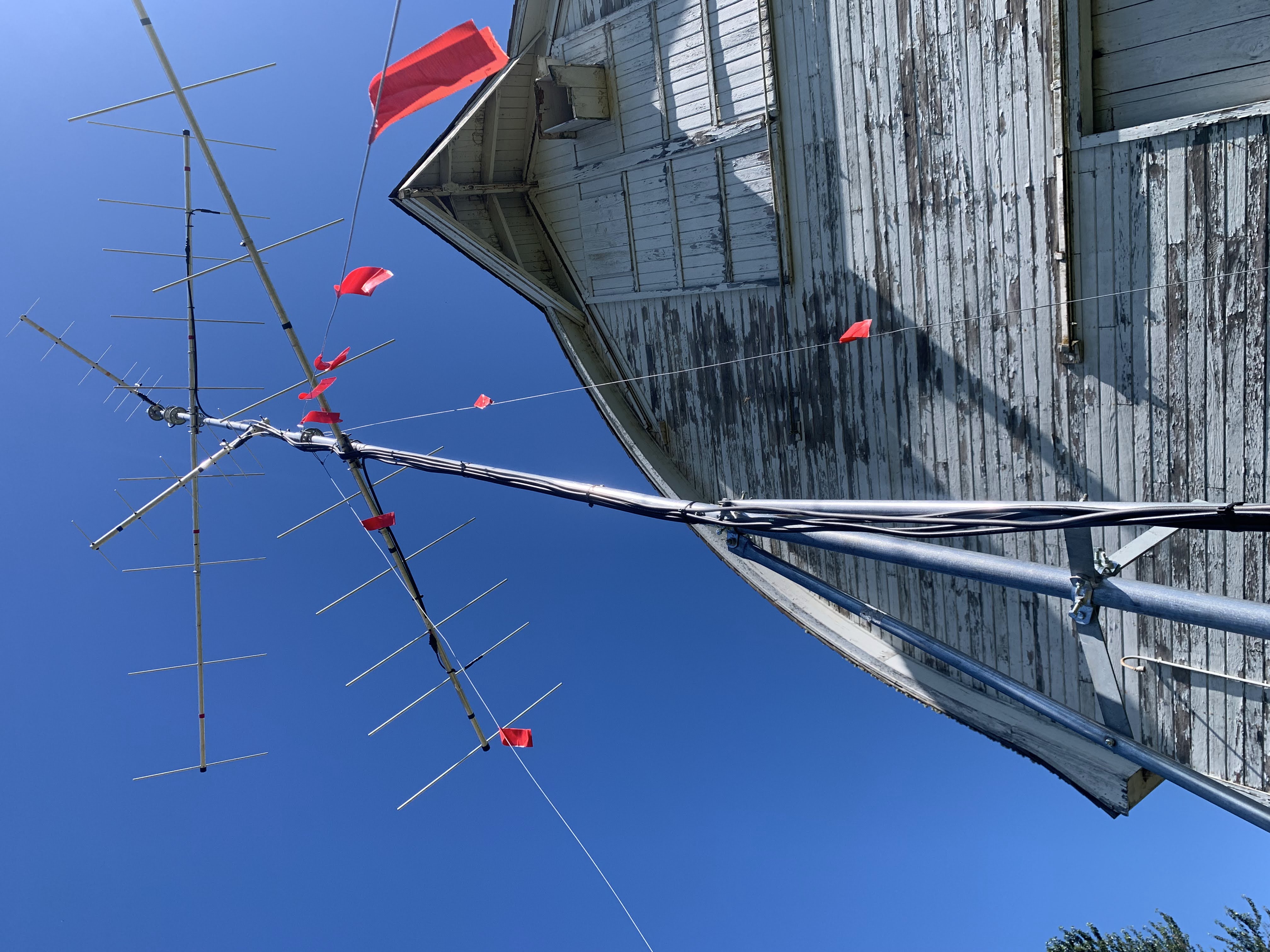 A Motus tower stands near the Twin Barns at Billy Frank Jr. Nisqually National Wildlife Refuge.